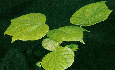 برگهاي جوان حالتي بيرنگ به خود ميگيرند و هر برگي كه ظاهر ميگردد از برگهاي قبل زردتر خواهد شد. رگبرگها به صورت سبز باقي مانده و برگهاي آلوده به تدريج پژمرده و نرم ميگردند. گياه قدرت خود را از دست ميدهد و محصول كاهش مييابد.