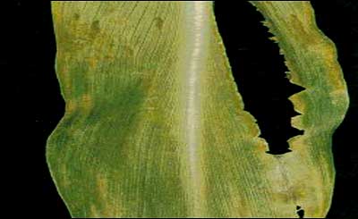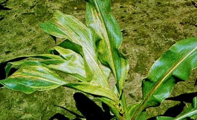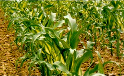 كمبود آهن موجب كاهش محصول دانه ذرت و زردي بين رگبرگي در برگهاي جوان ميشود.