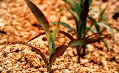 قرمز شدن لبه برگها و نكروزه شدن برگهاي پيرتر همراه با توقف رشد و تاخير در ظهور ريشكها و تاخير در رسيدگي از علائم كمبود فسفر است. بهار سرد و مرطوب فسفر قابل دسترس در خاك را كاهش ميدهد.