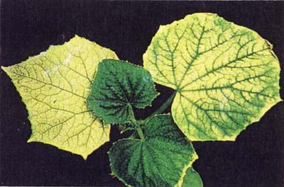 منيزيم در زودرسي، كيفيت و بازار پسندي محصول خيار تاثير دارد. وقتي بوته خيار مبتلا به كمبود منيزيم ميشود ابتدا برگهاي پائيني رنگ سبز طبيعي خود را از دست ميدهد و در حالي كه رگبرگها سبز تيره باقي ميمانند, نواحي بين آنها زرد رنگ ميشود. در شكل علائم درجات متفاوت كمبود در مقايسه با برگ سالم (وسط رديف اول) مشاهده ميشود.