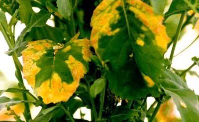 زرد شدن بين رگبرگها در برگهاي مسن و بدنبال آن بنفش شدن حاشيه برگها، رشد ضعيف و كوتاه شدن بوته همراه با كاهش محصول، توجه به كمبود منيزيم در جهت تثبيت گياه ضروري است.
