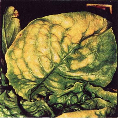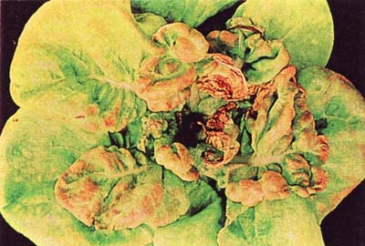 ازت به عنوان يكي از مواد غذايي اصلي در كليه مراحل رشد مورد نياز كاهو ميباشد. كمبود آن در اوايل فصل رشد سبب بروز عارضه زردي در برگها ميشود. در اثر ادامه كمبود تمام گياه زرد شده و نهايتا برگها قهوهاي و خشك ميشوند. در عكس بوته سالم كاهو در سمت راست و بوته دچار كمبود در سمت چپ مشخص است.